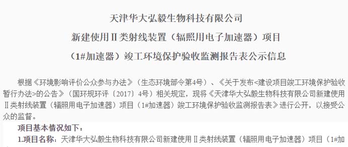 桂林華大生物科技有限公司使用電子加速器輻照項目 竣工環(huán)境保護(hù)驗收信息公示
